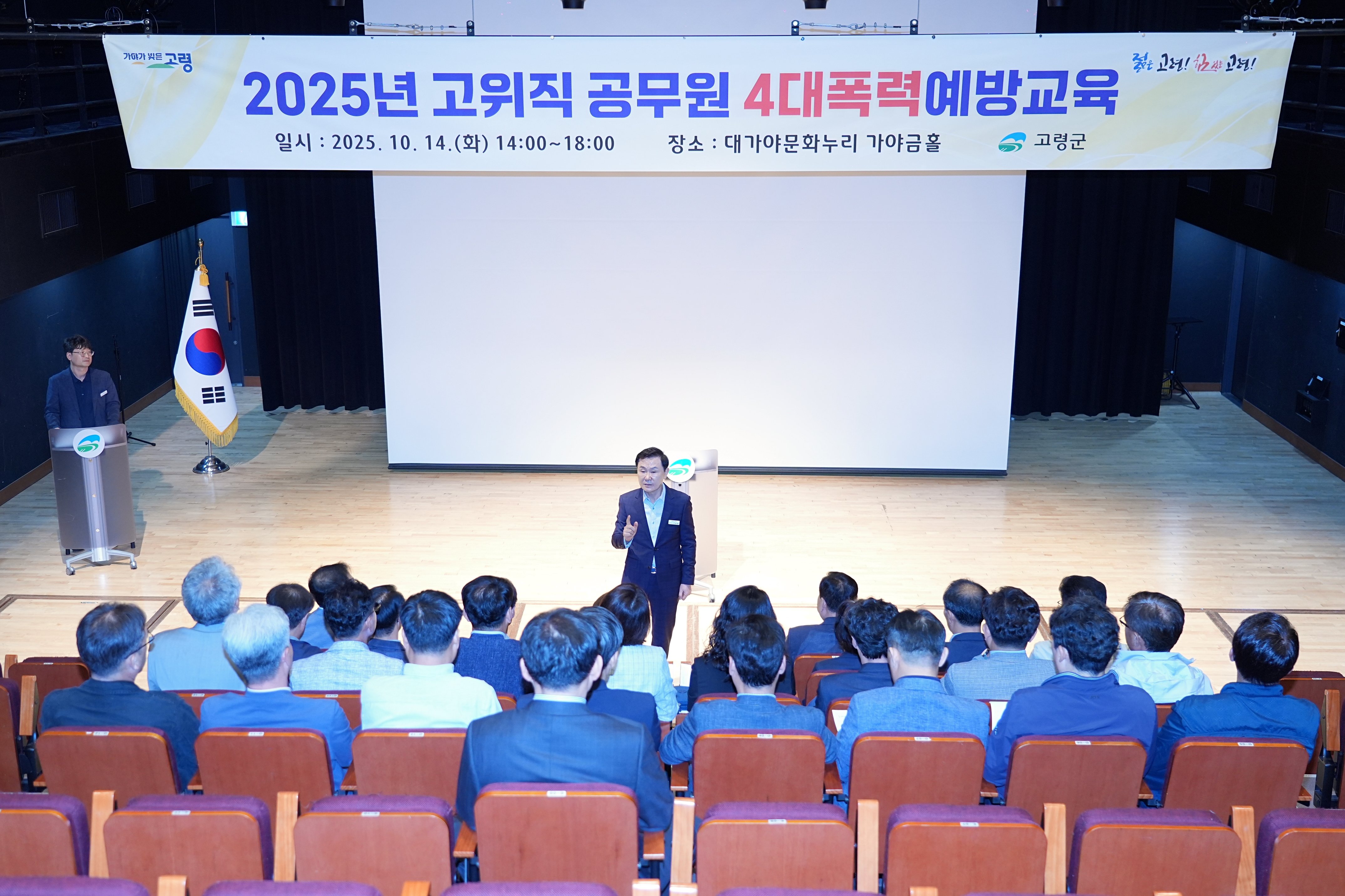 [아시아월드뉴스] 고령군(군수 이남철)은 14일 문화누리 가야금홀에서 이남철 군수를 비롯한 고위직 공무원 37명을 대상으로 4대 폭력(성희롱, 성폭력, 성매매, 가정폭력) 예방교육을 실시했다.