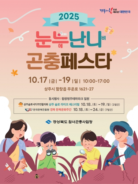 [아시아월드뉴스] 경상북도 잠사곤충사업장은 17일부터 19일 3일간 잠사곤충사업장 일원에서 ‘2025 눈누(에)난나(비) 곤충페스타’를 개최한다.