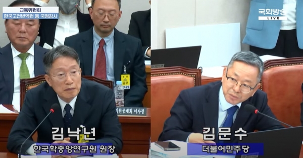 [아시아월드뉴스] 국회 교육위원회 국정감사에서 더불어민주당 김문수 의원이 한국학중앙연구원 김낙년 원장을 상대로 “이승만은 여순사건 학살자”고 직격했다.