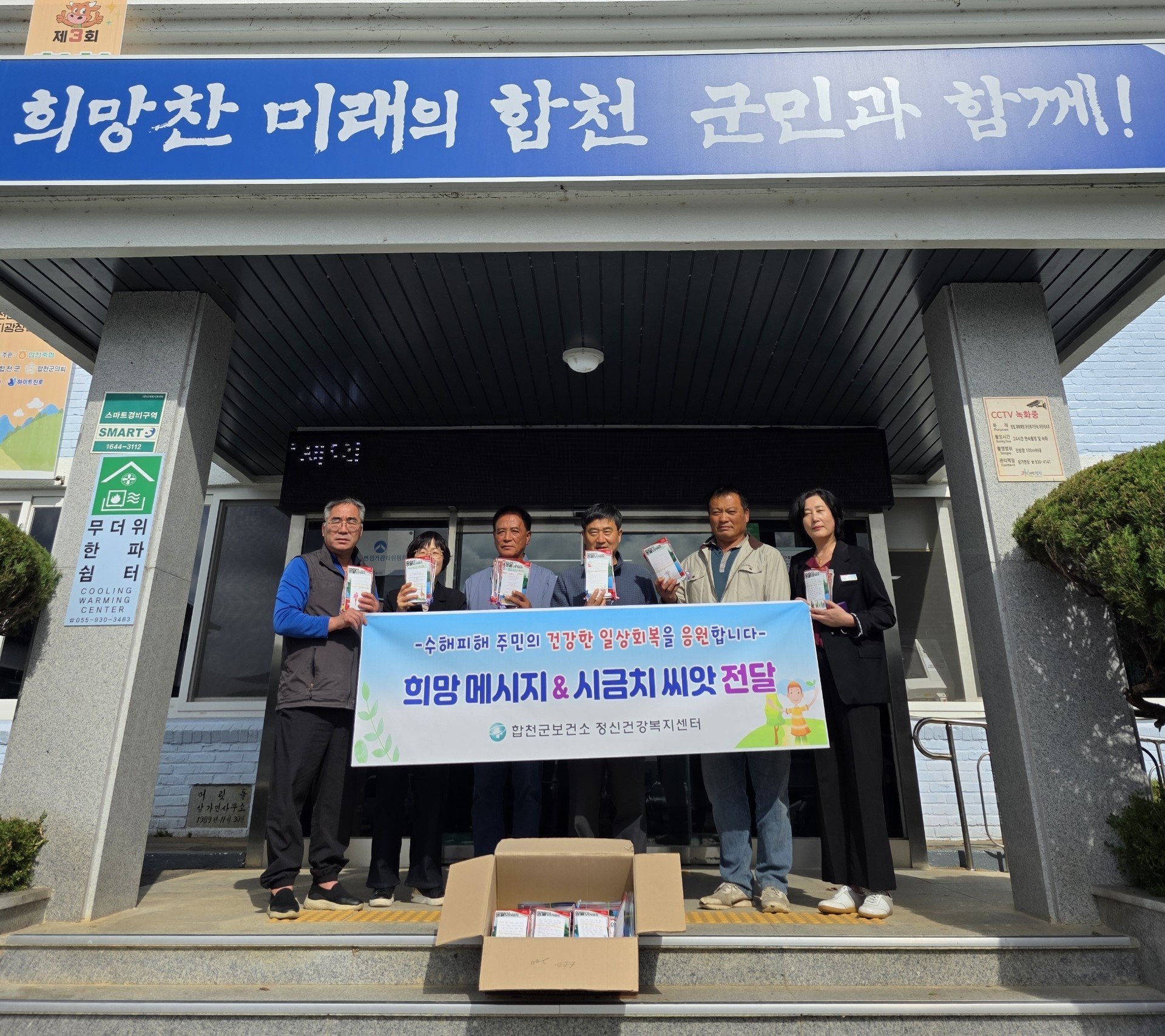 [아시아월드뉴스] 합천군(군수 김윤철)은 10월 22일 정신건강의 날(10월 10일)을 맞아 정신건강 홍보주간행사 ‘마음의 씨앗 심기 캠페인’을 통해 모인 응원엽서와 시금치 씨앗을 수해 피해가 컸던 가회·삼가·용주면에 각각 전달했다.