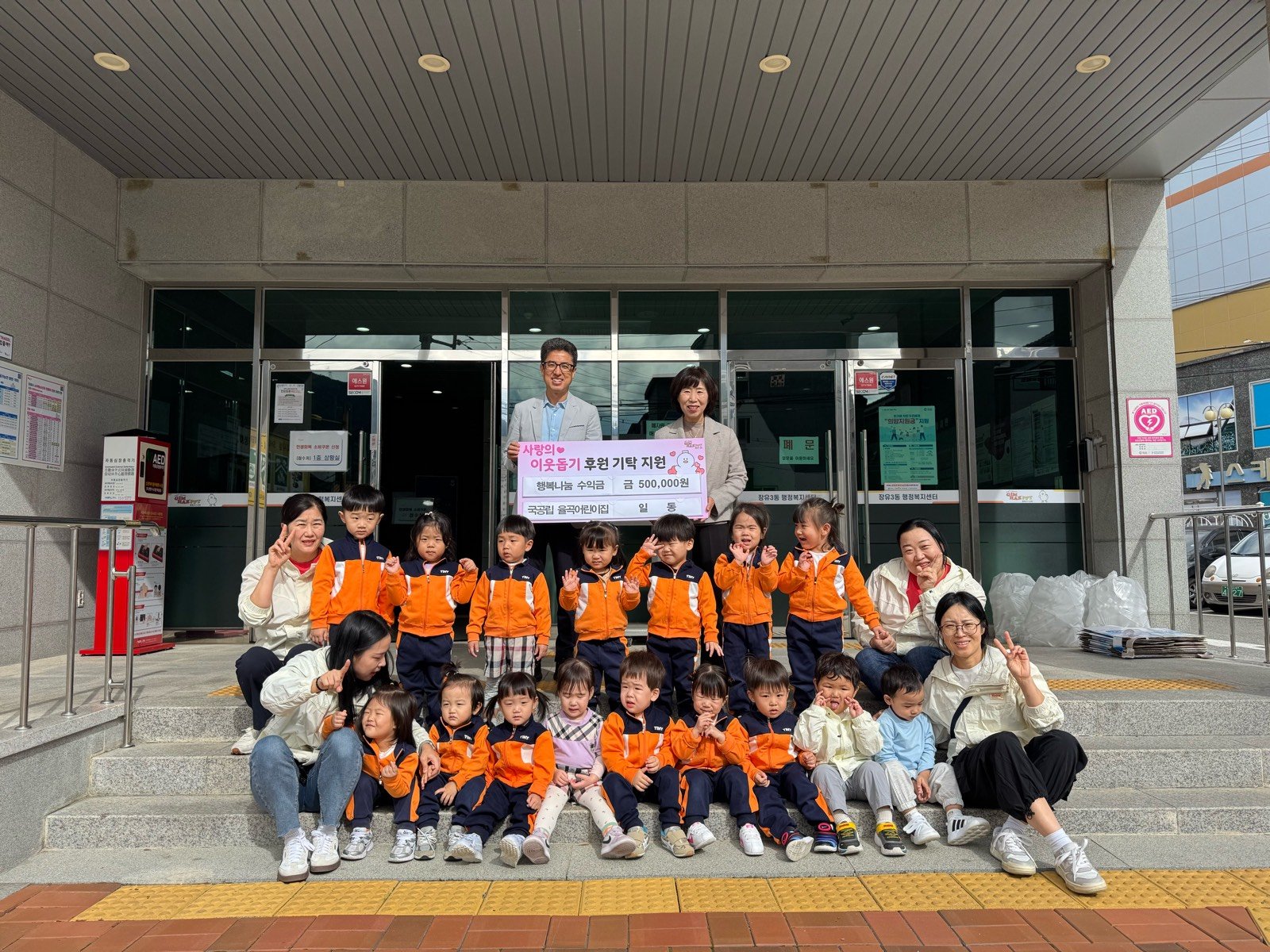 박진수 장유3동장은“매년 나눔을 통한 지역사회 복지발전에 힘써주시는 국공립 율곡어린이집 일동에 깊이 감사드린다. 이웃사랑 실천 문화가 더욱 활성화 되도록 적극 노력하겠다”라고 말했다.