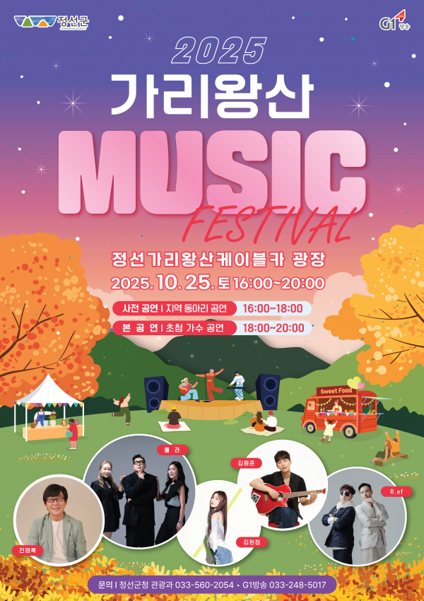 신원선 관광과장은 “가리왕산의 가을 풍경 아래에서 세대를 잇는 음악이 울려 퍼질 것”이라며 “정선을 찾는 모든 분들이 함께 즐기며 잊지 못할 가을 추억을 만들어가길 바란다”고 전했다.