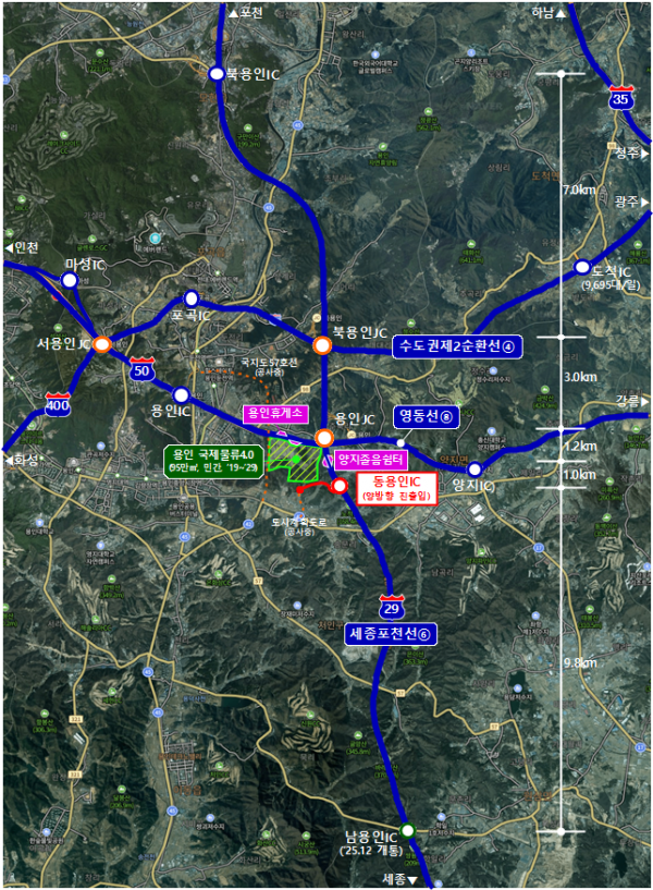동용인IC 신설은 용인 국제물류4.0 유통단지의 고속도로 접근성 향상과 경기도 용인특례시 주민들의 이동 편의를 위해 추진되는 사업으로 총 사업비 약 936억원, 일평균 교통량은 27,471대로 용인시 처인구 양지면 일원에 설치되어 향후 물류단지 진입도로 및 국도 42호선과 연결되며 실시설계와 건설공사를 거쳐 ’ 29년 개통될 예정이다.