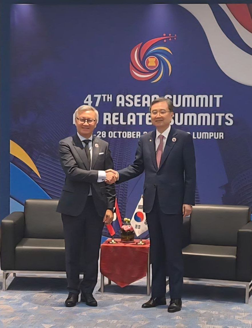 [아시아월드뉴스] 조현 외교부 장관은 말레이시아에서 개최된 아세안 관련 정상회의 계기 10.27.(월) 저녁 ‘통싸완 폼비한(Thongsavanh PHOMVIHANE)’라오스 외교부 장관과 회담을 갖고 △양국 관계, △온라인 스캠 범죄 대응, △한반도 문제 등 상호 관심사에 대해 의견을 교환했다.