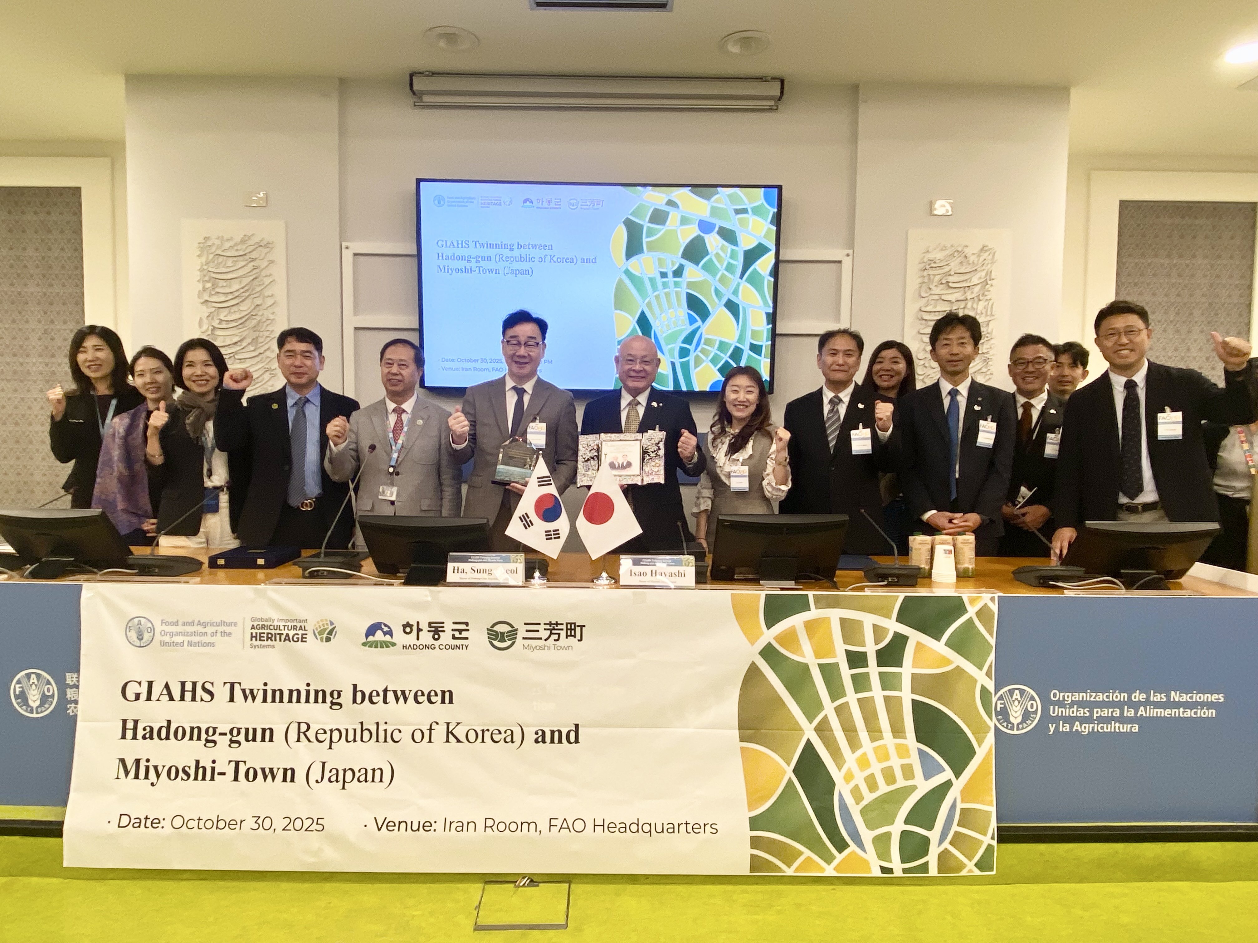 하동군은 이번 FAO 방문 기간 중인 10월 30일 같은 해 GIAHS에 등재된 일본 미요시정(정장 하야시 이사오)과 우호도시 협약을 체결했다.