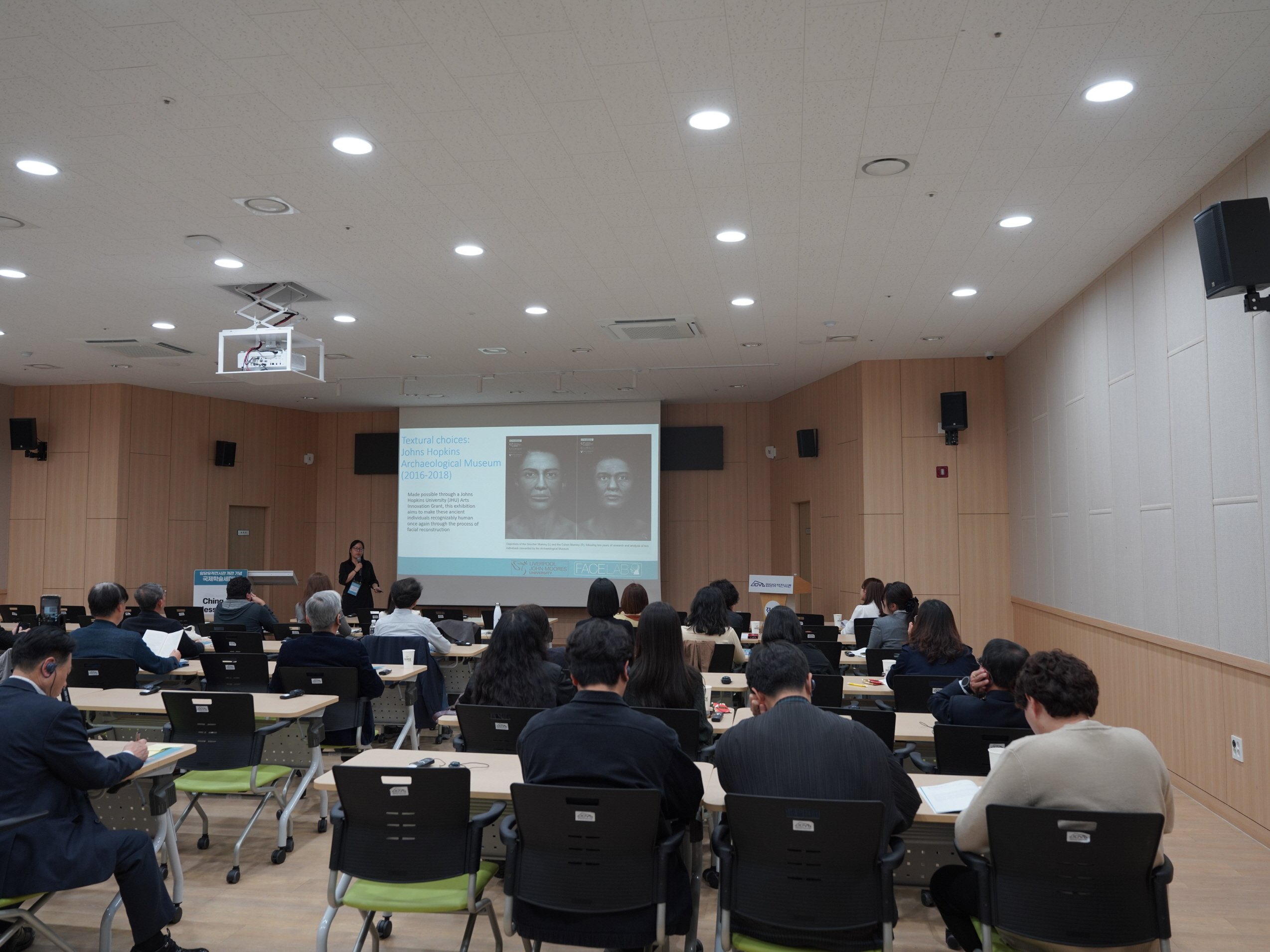 1일차 발표는 영국 리버풀 존 무어스대학교 제시카 리우(Jessica Liu) 박사의 “과거 사람들의 얼굴을 묘사하다”발표를 시작으로 독일 막스플랑크 진화인류학연구소 로드리고 바르케라(Rodrigo Barquera) 박사의 “오래된 분자의 새로운 모험 : 생물고고학을 위한 도구로서의 고대 DNA”발표가 이어졌고 미국 스미소니언 국립자연사박물관 폴 테일러(Paul M. Taylor) 박사의 “스미소니언에서의 인골연구와 전시에 관한 큐레이터적 관점”발표, 미국 UC데이비스대학교 정현우 교수의 “골격 및 치아의 형태학적 및 단백체학적 분석을 통한 스트레스 평가 : 임당 유적지에 대한 사례연구 및 응용”발표가 있었다.