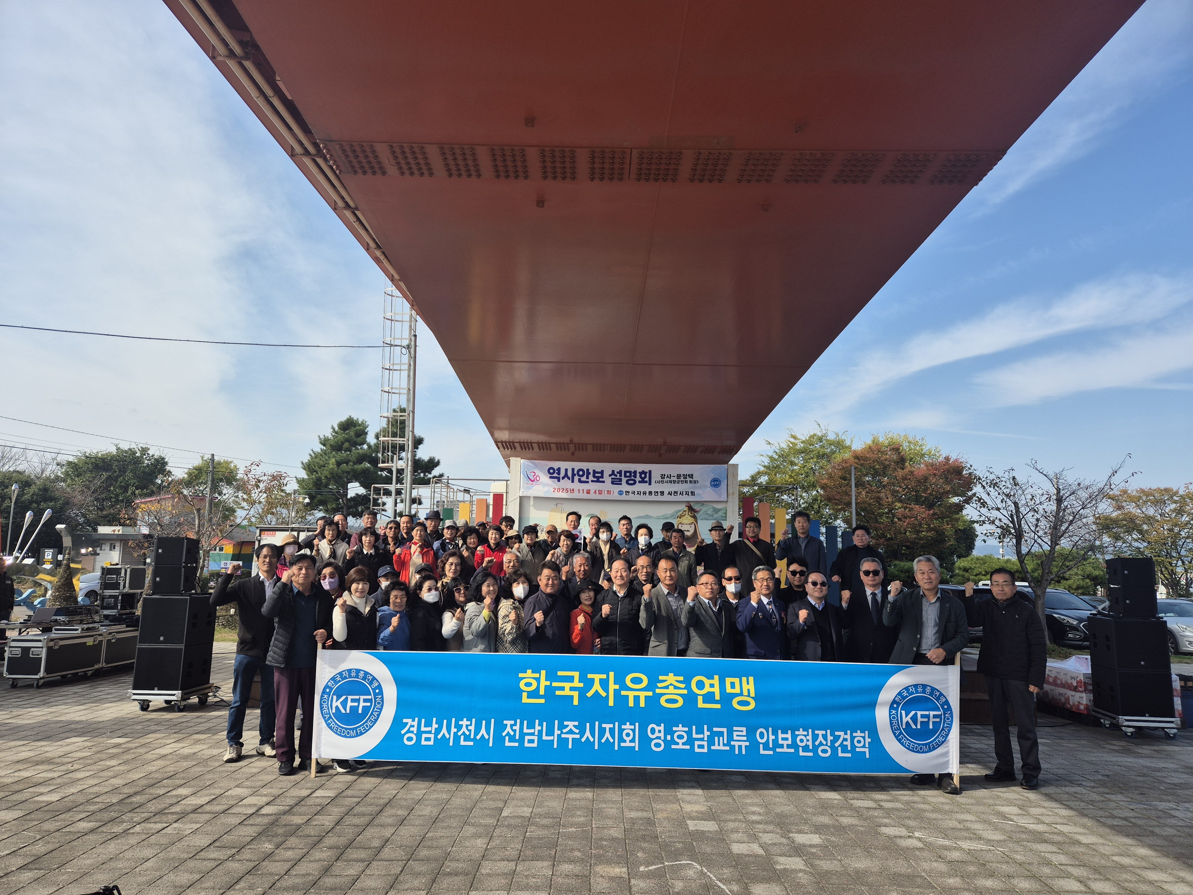 [아시아월드뉴스] 한국자유총연맹 사천시지회(회장 조용백)는 지난 4일(화) 한국자유총연맹 나주시지회(회장 정천운)를 초청해 영·호남 교류 행사를 개최했다.