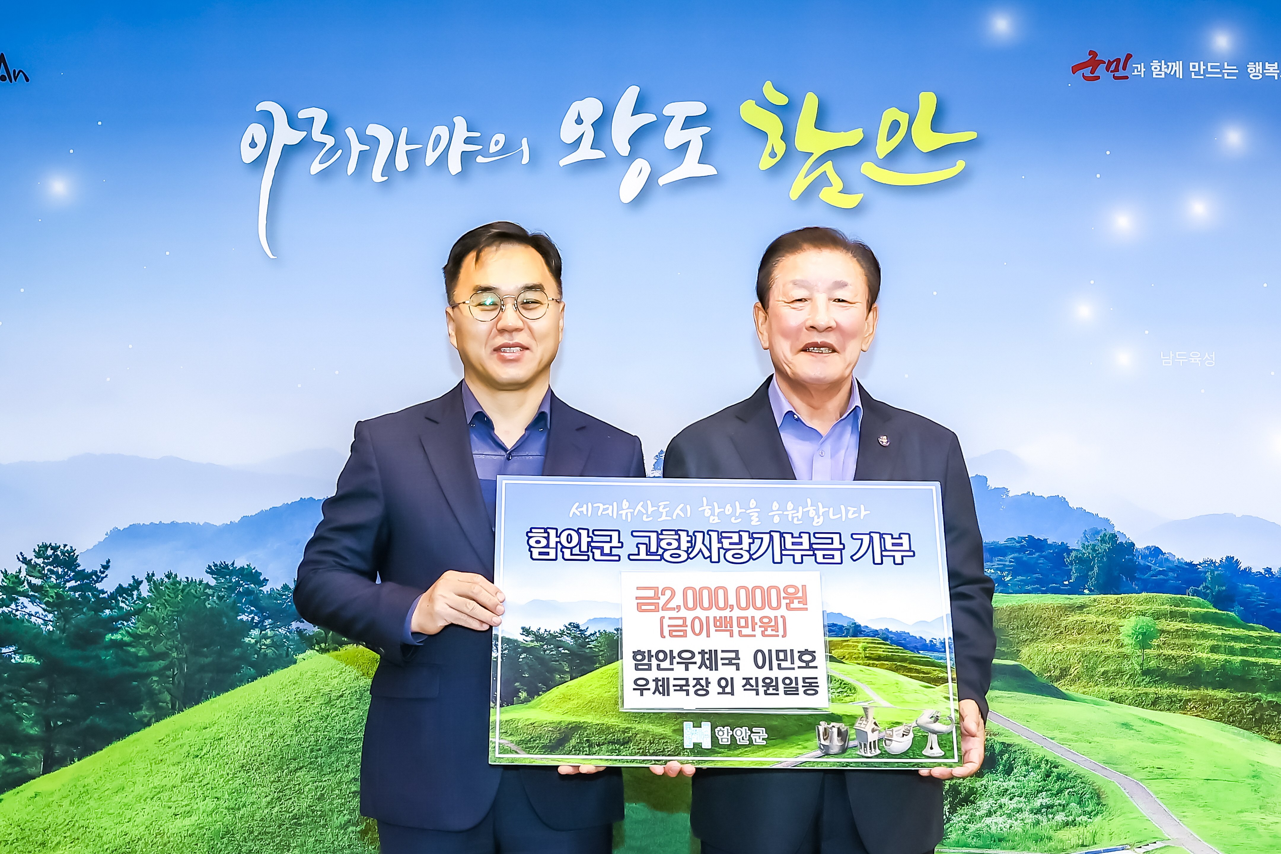 이번 기탁은 함안우체국이 지역의 일원으로서 고향사랑기부제의 취지에 동참하고 지역 상생과 나눔 문화를 확산하기 위해 마련됐다.