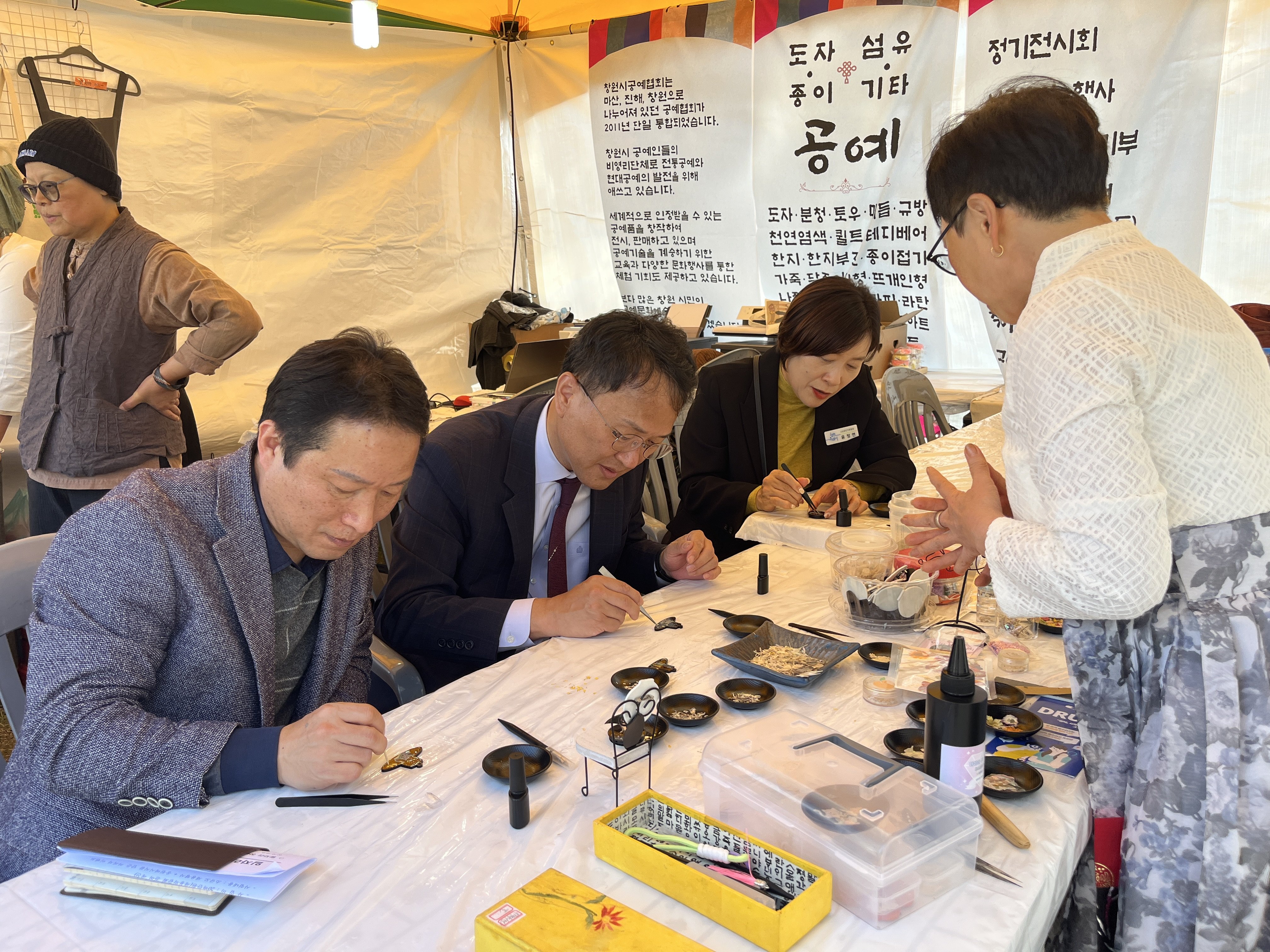 [아시아월드뉴스] 창원특례는 제25회 마산가고파국화축제기간 중인 11월 5일 박진열 경제일자리국장이 3·15해양누리공원내 ‘국화 담은 굿즈 만들기’공예 체험부스를 방문해 공예 체험 프로그램에 직접 참여하고 현장에서 활동 중인 공예가들을 격려했다고 밝혔다.