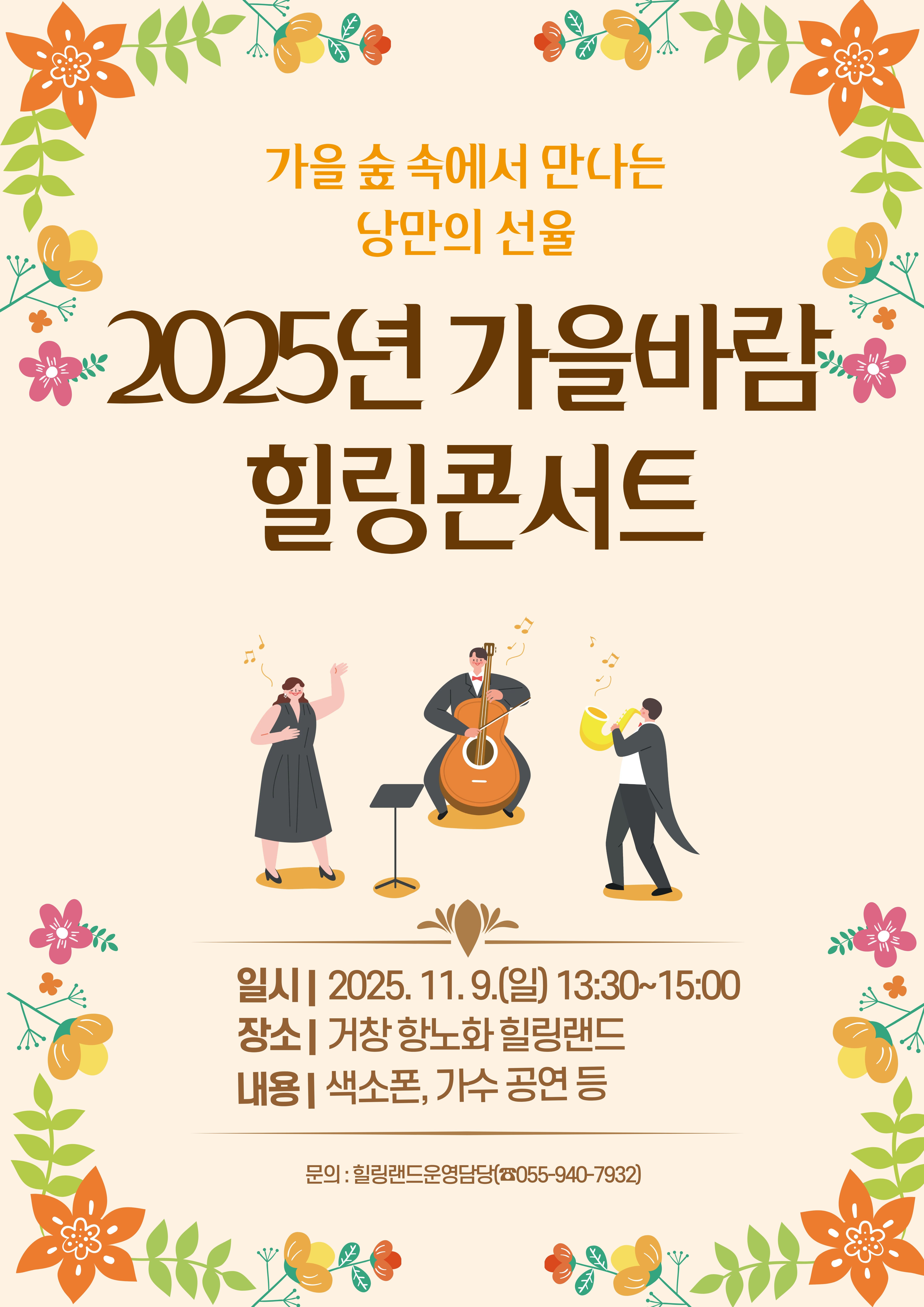 [아시아월드뉴스] 거창군은 오는 9일 거창 항노화 힐링랜드에서 ‘2025년 가을바람 힐링콘서트’를 개최한다.