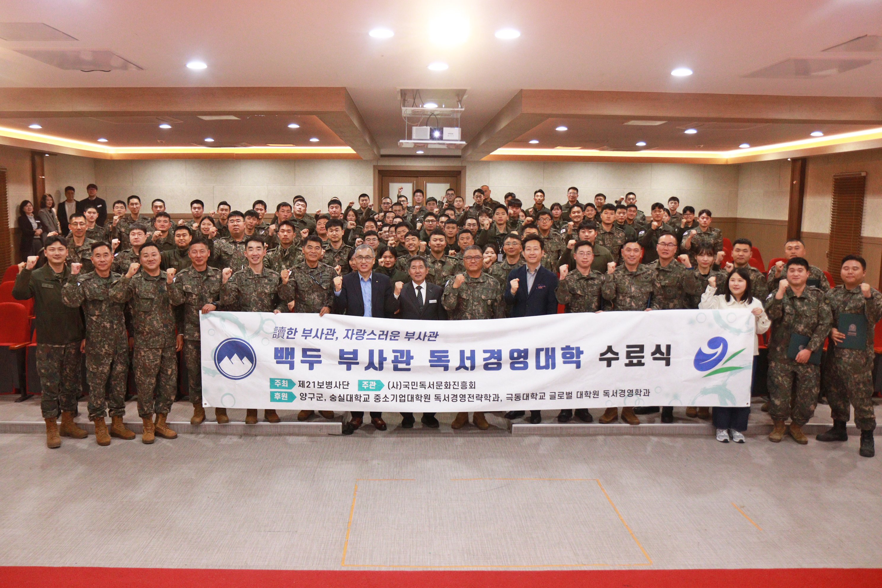 [아시아월드뉴스] 양구군은 5일 군 장병의 자기개발 능력 향상과 독서문화 확산을 위해 운영 중인 ‘독서경영대학’교육과정에서 성실한 참여와 우수한 성취도를 보인 군 장병 5명을 우수 수료자로 선정해 표창장을 수여했다고 밝혔다.