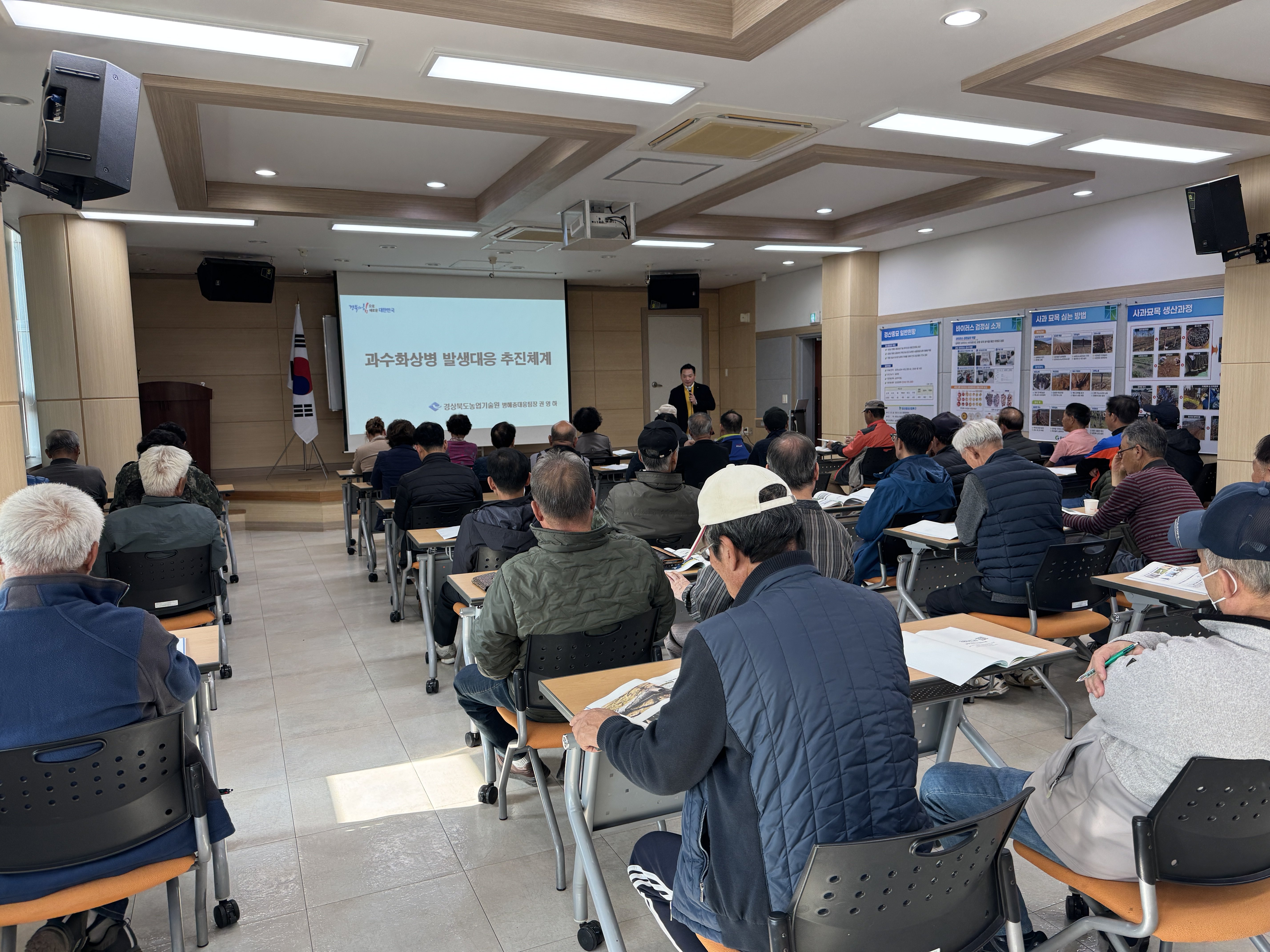 [아시아월드뉴스] 경산시농업기술센터는 6일 종묘기술개발센터에서 과수화상병 사전 예방을 위한 교육을 실시했다.