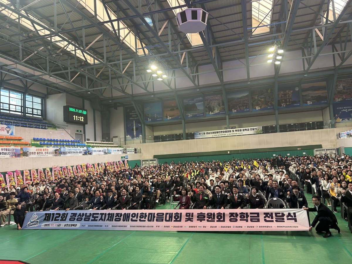 [아시아월드뉴스] 제12회 경남지체장애인한마음대회 및 후원회 장학금 전달식이 지난 7일 삼천포체육관에서 성대히 열렸다.