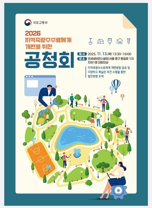 공청회에는 측량 업계·수요기관은 물론 관심 있는 국민 누구나 참석해, 수수료 개선 방안을 공유하고 폭넓은 의견을 제시할 수 있다.