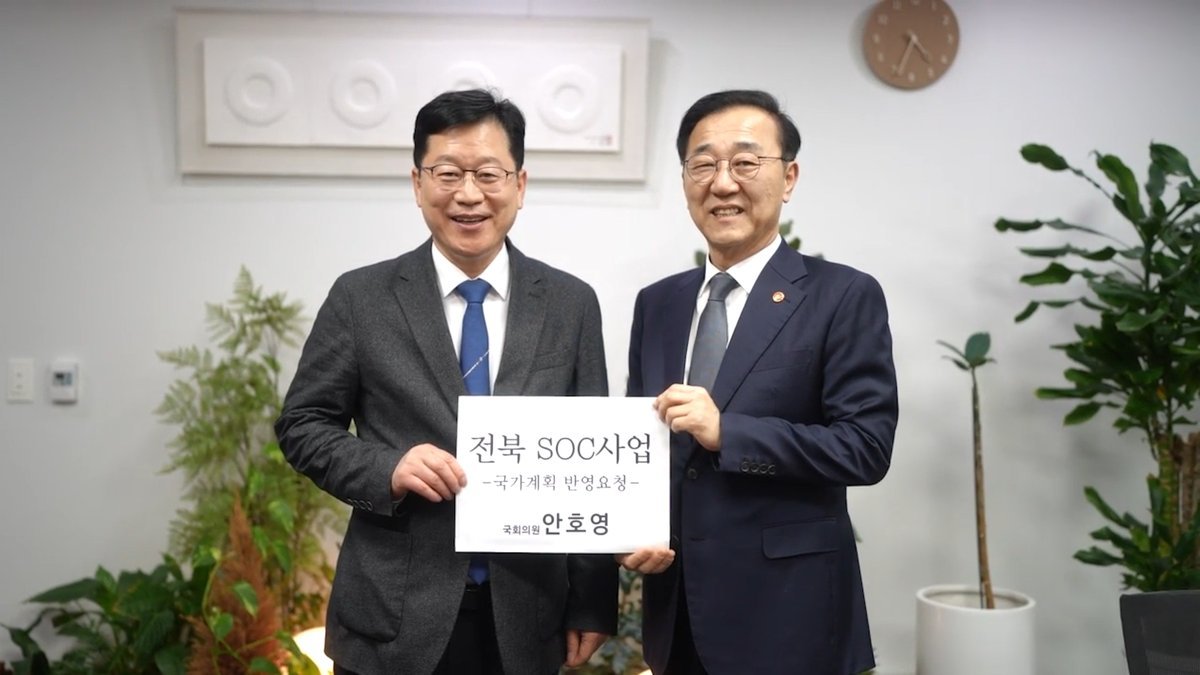 [아시아월드뉴스] 국회 기후에너지환경노동위원장 안호영 의원은 11월 28일 오후 4시, 국회의원회관에서 김윤덕 국토교통부 장관을 만나 전북특별자치도 주요 SOC 사업의 국가계획 반영을 공식 건의했다.