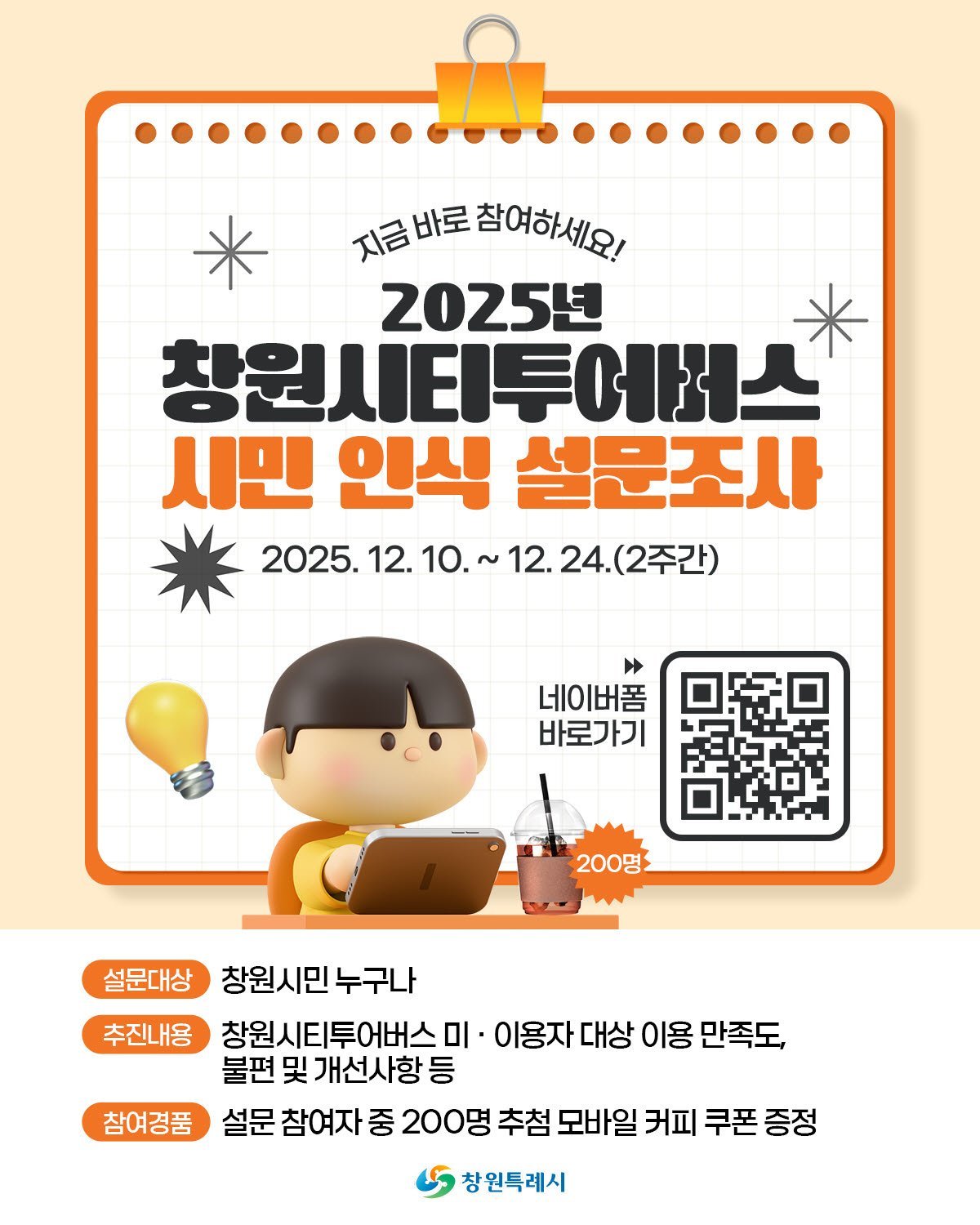 또한 시민 참여 확대를 위해 설문 응답자 200명을 추첨해 모바일 커피쿠폰을 제공하는 이벤트도 함께 추진할 계획이다.