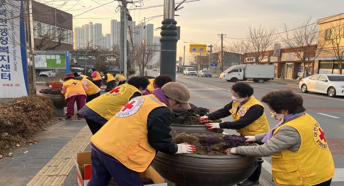이번 작업에는 부북면 적십자봉사회 회원 15명이 참여해 가로 화분을 정비하고 꽃을 심는 등 거리 미관 개선 활동에 힘을 보탰다.