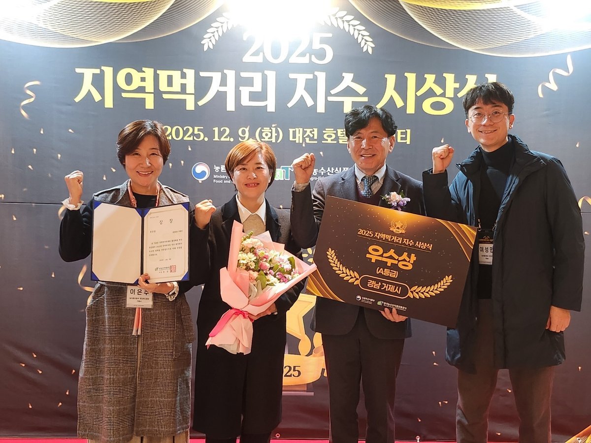 [아시아월드뉴스] 거제시는 지난 9일 대전 인터시티 호텔에서 열린 농림축산식품부 주최, 한국농수산식품유통공사 주관의 ‘2025 지역먹거리지수 평가’시상식에서 우수지자체로 선정됐다고 밝혔다.