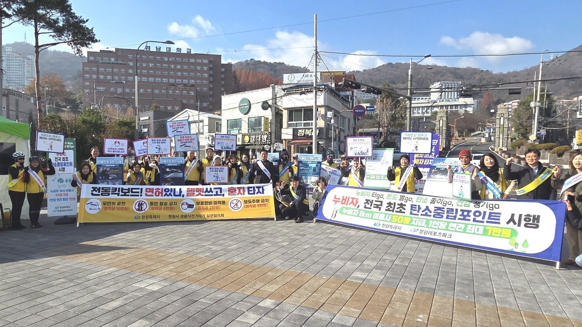 [아시아월드뉴스] 창원특례시는 전동킥보드 이용 증가에 따른 안전사고를 예방하고 올바른 이용 문화를 확산하기 위해 창원시 생활자전거타기실천협의회와 함께 경남대 앞 월영광장에서 영상·사진 캠페인을 12월 11일부터 12일까지 실시했다.