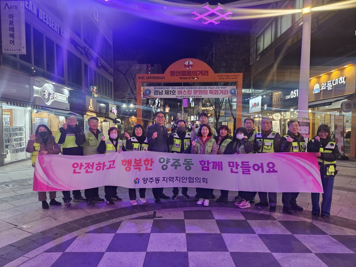 [아시아월드뉴스] 양산시 양주동 지역치안협의회는 지난 11일 저녁 중부동 젊음의거리 일원에서 합동 순찰 활동을 실시했다.