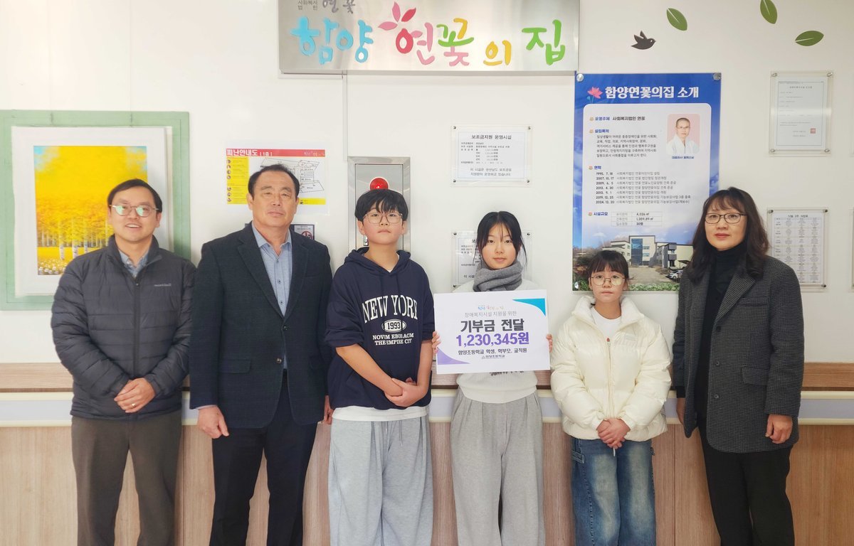 [아시아월드뉴스] 함양초등학교은 12월 10일 중증장애인 거주시설 함양연꽃의집에 알뜰바자회 성금 120만원을 기탁했다고 밝혔다.