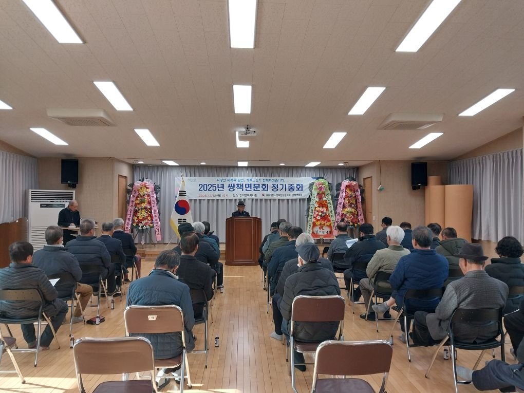[아시아월드뉴스] 합천군 쌍책면 노인회분회는 12일 복지회관 2층 회의실에서 대한노인회 합천군지회, 유관 기관사회단체장, 마을 경로당 회장 및 총무 등 50여 명이 참석한 가운데 2025년 쌍책면 노인회분회 정기총회를 개최했다.