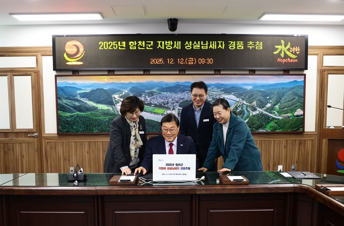 [아시아월드뉴스] 합천군은 12일 군청 소회의실에서 김윤철 군수를 비롯한 군청 관계자가 자리한 가운데 지방세를 성실하게 납부한 납세자에게 감사의 뜻을 전하고 건전한 납세문화를 확산하기 위해 '2025년 지방세 성실납세자 경품 추첨행사'를 실시했다.