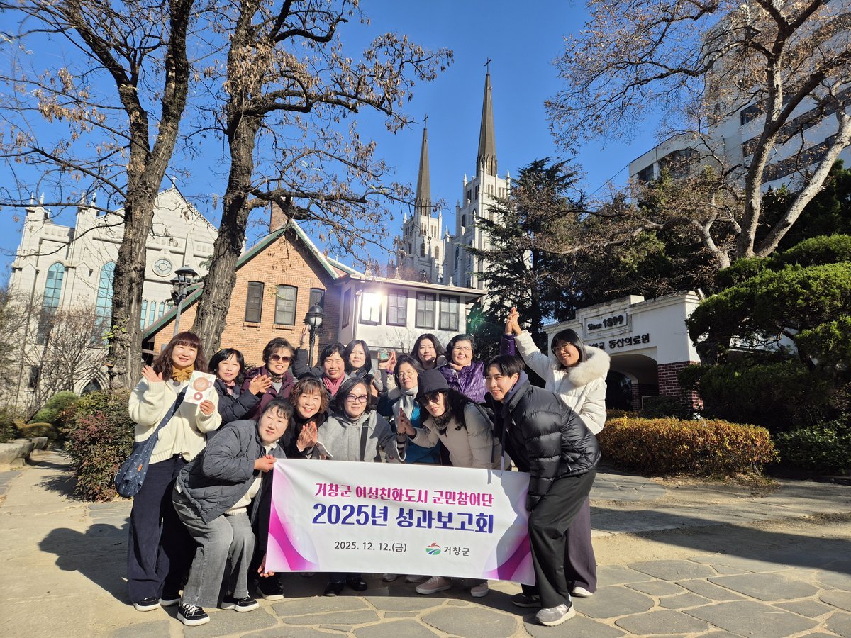 [아시아월드뉴스] 거창군은 지난 12일, 여성친화도시 군민참여단 20여 명이 대구 중구 ‘여성반지길’탐방 프로그램을 진행하며 2025년 한 해의 활동을 되돌아보는 성과보고회를 개최했다고 밝혔다.