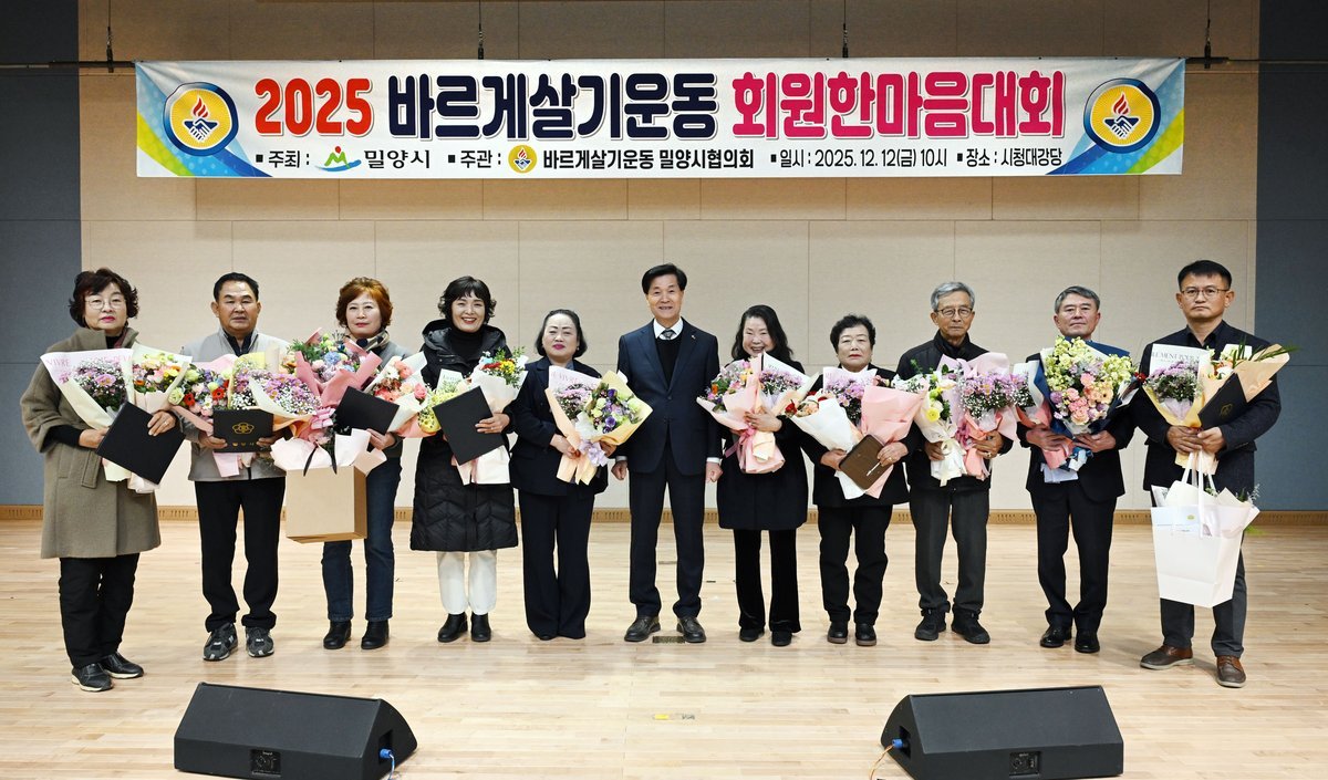 [아시아월드뉴스] 바르게살기운동 밀양시협의회가 주관한 ‘2025년 바르게살기운동 밀양시협의회 회원 한마음대회’가 12일 시청 대강당에서 성황리에 개최됐다.