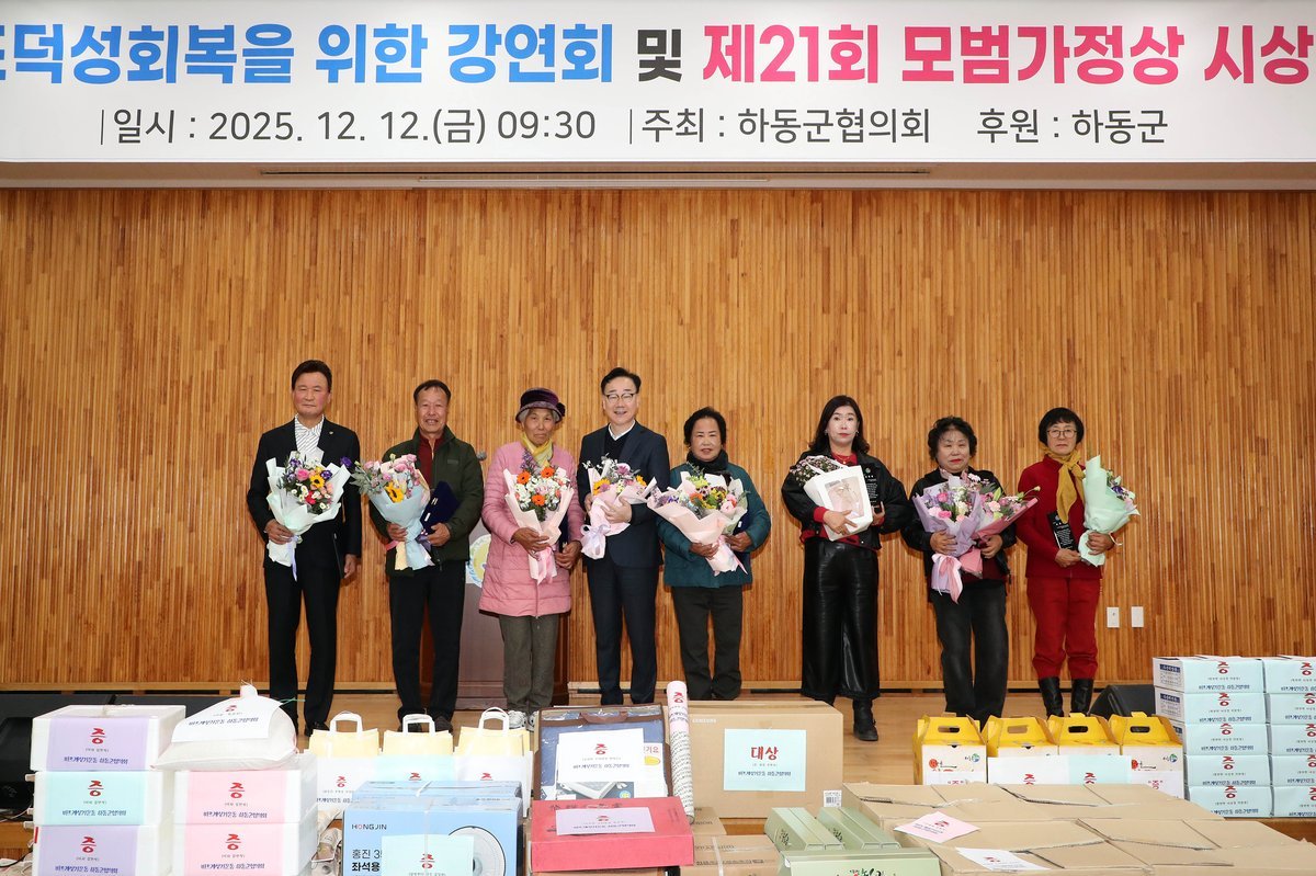 [아시아월드뉴스] 바르게살기운동 하동군협의회는 지난 12일 양보문화센터에서 ‘2025년 도덕성 회복 강연회 및 제21회 모범가정상 시상식’행사를 열었다.
