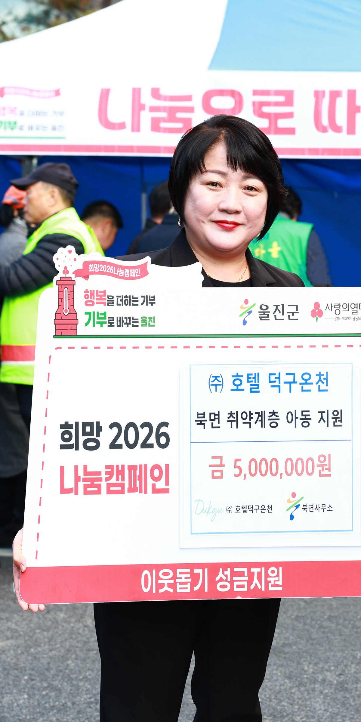 장경희 북면장은“지역의 어려운 이웃들을 위해 매년 따뜻한 나눔을 실천해주신 덕구온천호텔에 깊은 감사의 뜻을 전한다”며“기탁된 성금이 도움이 필요한 가정에 큰 힘이 될 수 있도록 신속하고 투명하게 지원하겠다”라고 말했다.