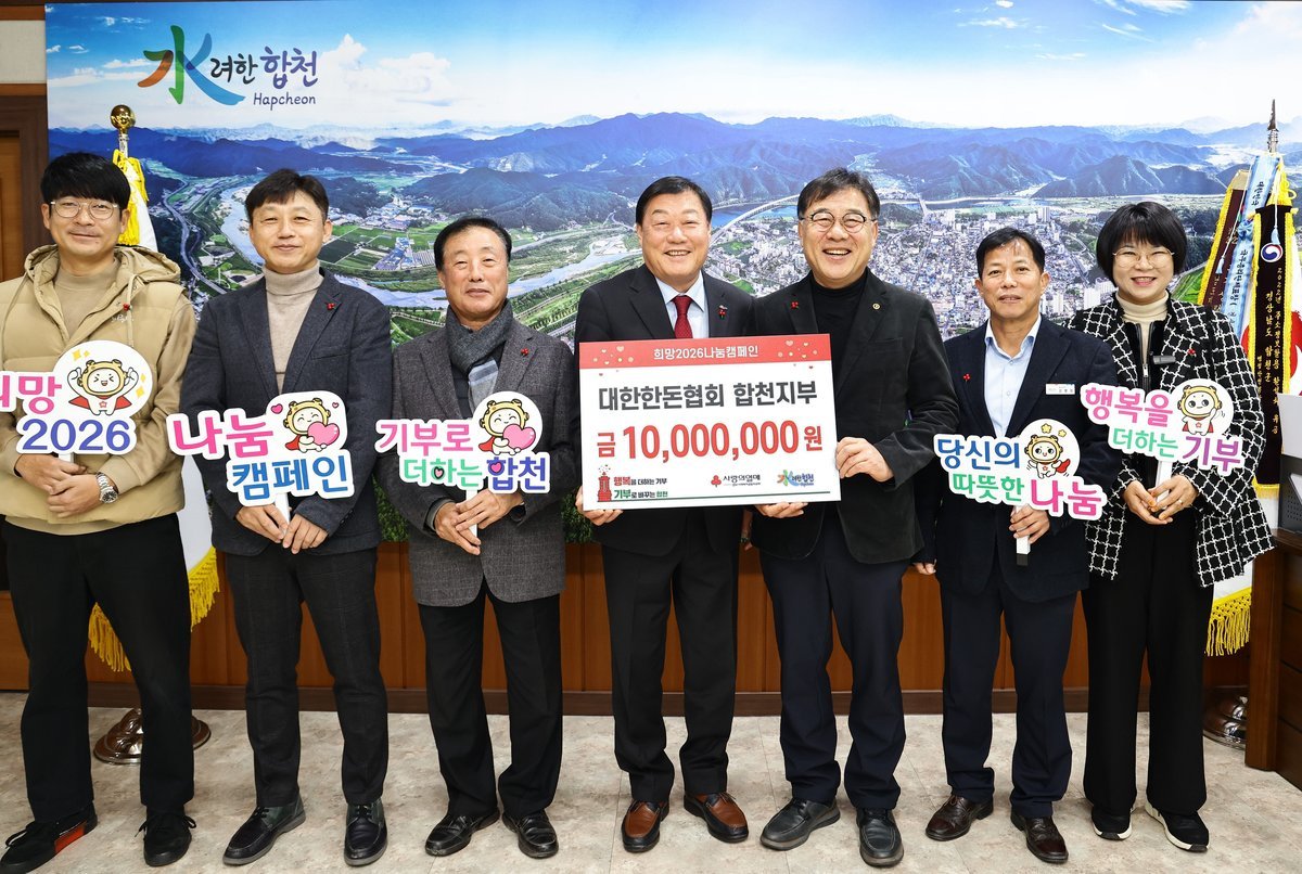 김윤철 합천군수는 “지역을 위해 매년 나눔을 실천해 주셔서 깊이 감사드린다”며 “기탁해 주신 성금은 도움이 필요한 군민들에게 따뜻한 마음과 함께 소중히 전달하겠다”고 말했다.