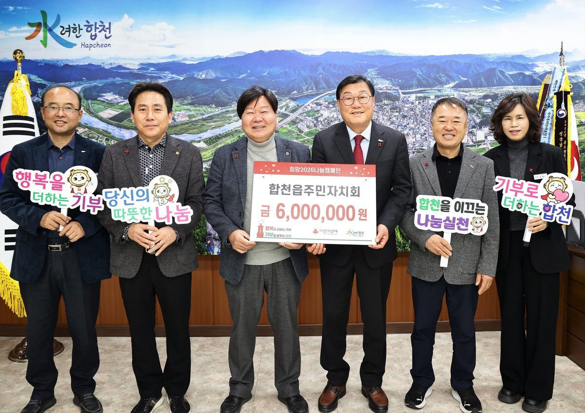 한편 합천군은 2025년 12월 1일부터 2026년 1월 31일까지 희망2026나눔캠페인 이웃돕기 성금 집중 모금 기간을 운영하고 있다.
