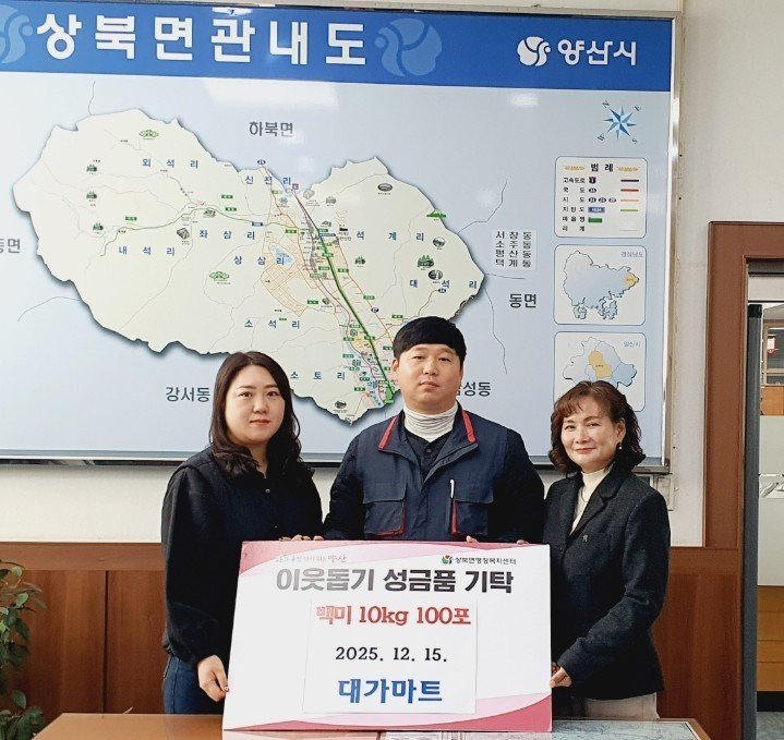 박순옥 상북면장은 “대가마트의 지속적인 관심과 나눔에 깊이 감사드린다”며 “이번 기부가 지역사회에 큰 감동을 줬으며, 이로 인해 많은 이들이 따뜻한 연말을 보내게 될 것”이라고 전했다.