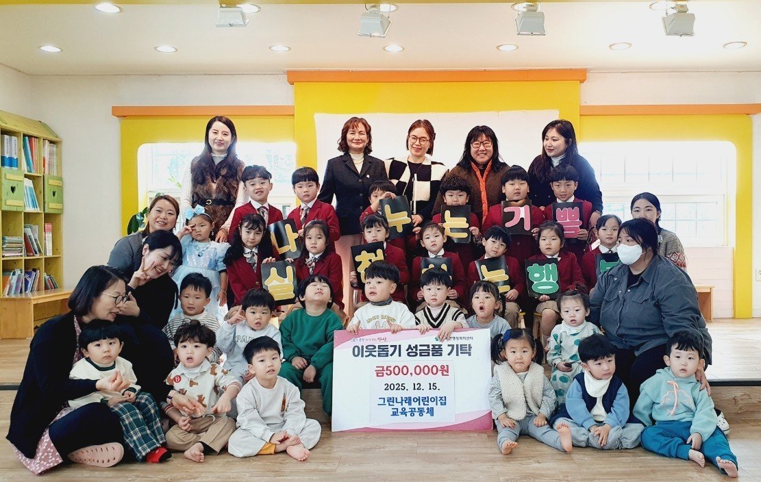 [아시아월드뉴스] 양산시 상북면에 있는 그린나래어린이집 교육공동체는 15일 연말을 앞두고 어려운 이웃을 돕기 위한 후원금 50만원을 상북면행정복지센터에 기탁했다.