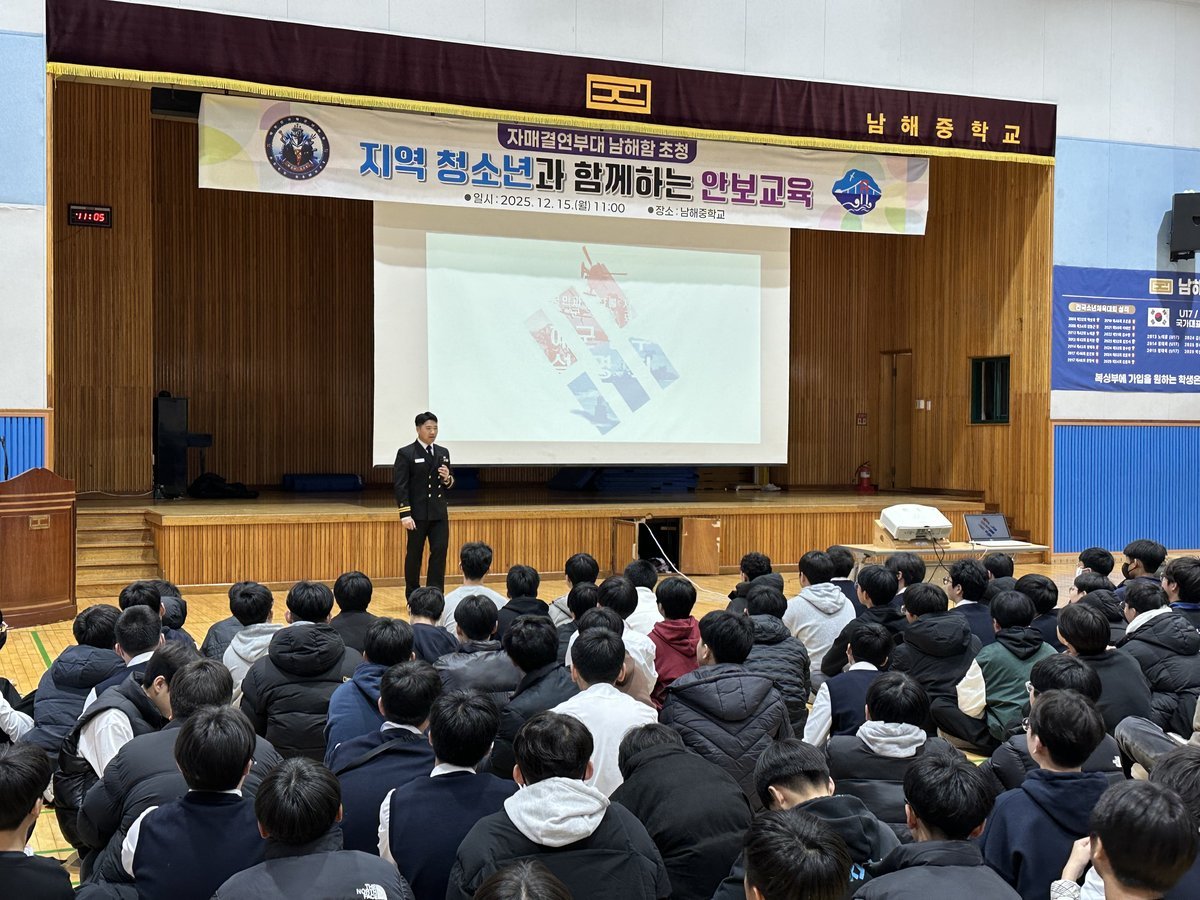 이번 안보교육에는 양현녕 대위를 비롯한 남해함 간부진이 참석했으며, 남해중학교 1~3학년 학생과 교직원 170여 명이 함께했다.