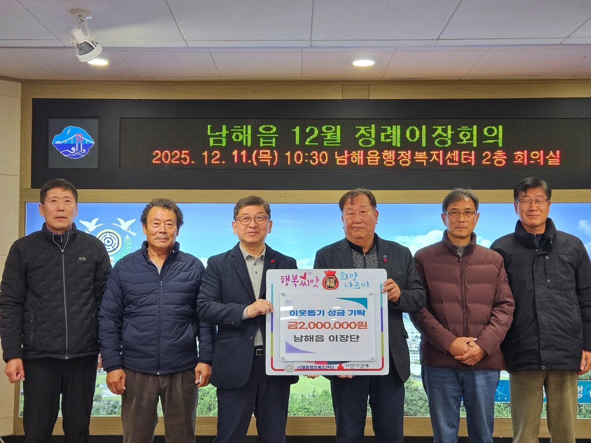 남해읍 이장단은 매년 성금을 기탁하며 지역사회 나눔문화 확산에 앞장서고 있다.