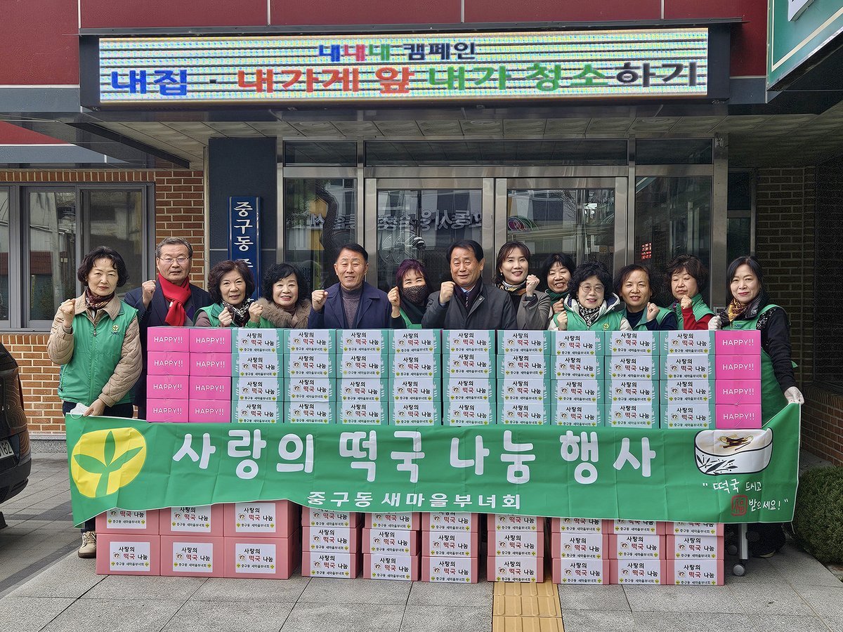 중구동 새마을부녀회는 떡국 나눔뿐만 아니라 쌀 나눔, 삼계탕 나눔, 김장 김치 나눔, 어르신 안부 살피기 등 지속적인 봉사활동을 통해 지역사회 복지 증진과 나눔 문화 확산에 기여하고 있다.