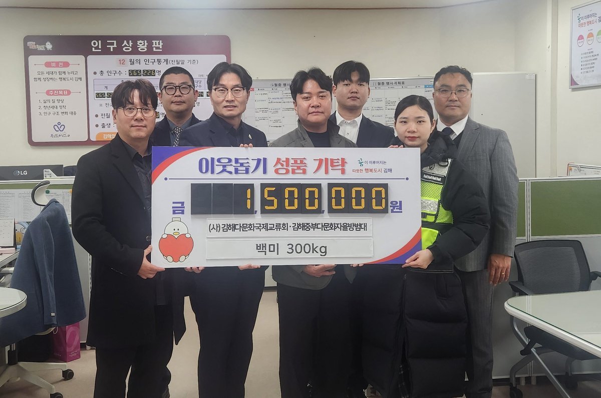 [아시아월드뉴스] 김해시는 지난 16일 김해다문화국제교류회와 김해중부다문화자율방범대에서 쌀 300㎏을 기탁했다고 밝혔다.