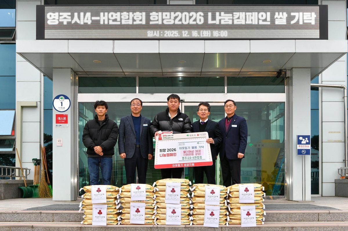 유정근 영주시장 권한대행은 “어려운 이웃을 위해 따뜻한 나눔을 실천해 주신 영주시4-H연합회 회원 여러분께 감사드린다”며, “청년농업인들의 선한 영향력이 지역사회에 큰 힘이 되고 있는 만큼, 시에서도 지속적인 지원을 아끼지 않겠다”고 밝혔다.