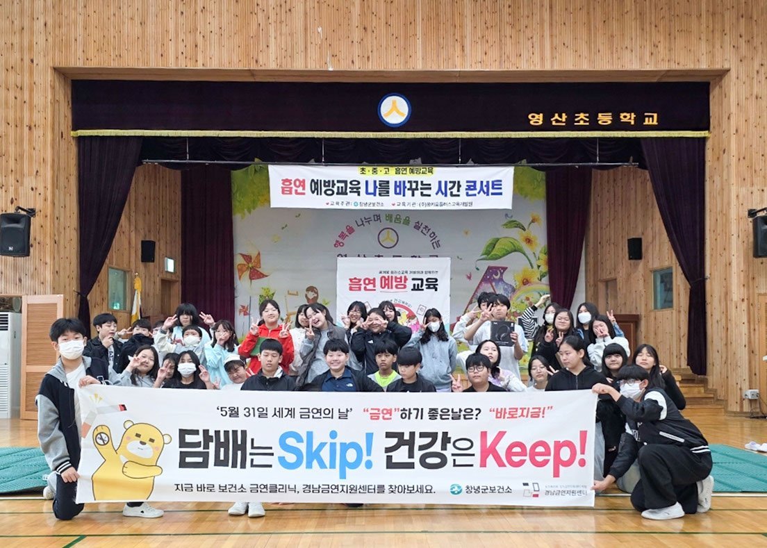 [아시아월드뉴스] 창녕군은 지난 10월부터 2개월간 관내 어린이와 청소년을 대상으로 흡연 예방과 금연 실천을 유도하기 위한 ‘금연 나바시 콘서트’를 운영했다고 밝혔다.