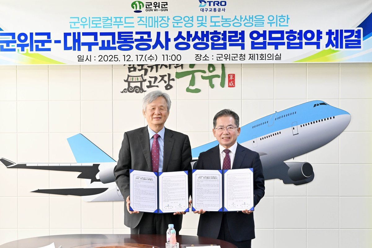 [아시아월드뉴스] 대구광역시 군위군은 12월 17일 군위군청에서 대구교통공사와 「군위 로컬푸드 직매장 설치‧운영을 위한 업무협약」을 체결했다.