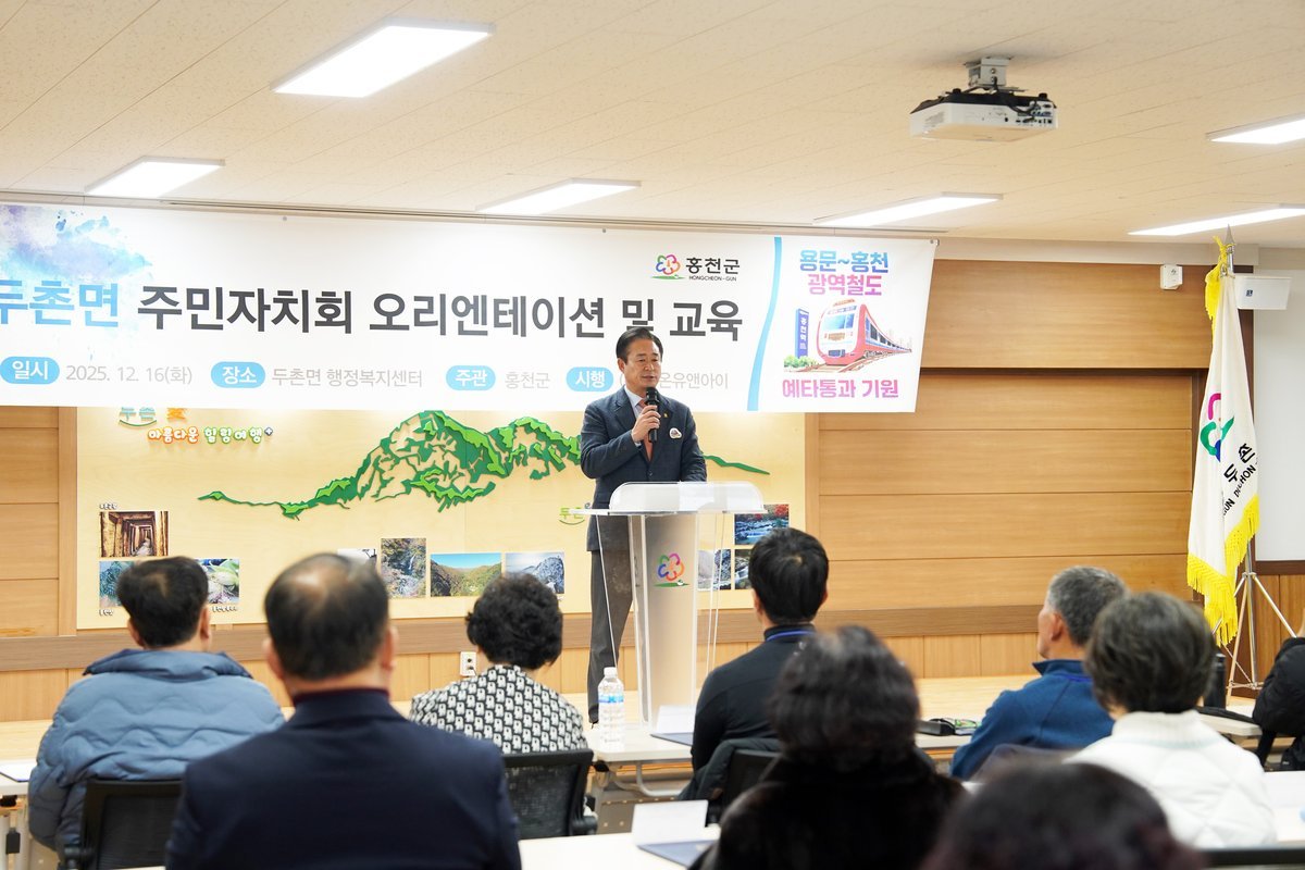 [아시아월드뉴스] 홍천군은 12월 15일부터 16일까지 이틀간 두촌면, 영귀미면행정복지센터 대회의실에서 ‘주민자치회 오리엔테이션 및 위촉식’을 개최했다.