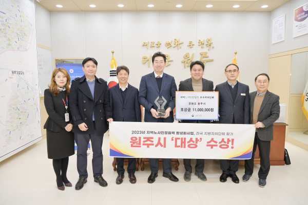 [AANEWS] 원주시가 고용노동부 주관으로 전국 지방자치단체를 대상으로 하는 ‘2023년 지역 노사민정 협력 활성화 사업’지자체 평가에서 우수 지자체로 선정되어 최고부문인‘대상’을 수상하는 영예를 안았다.