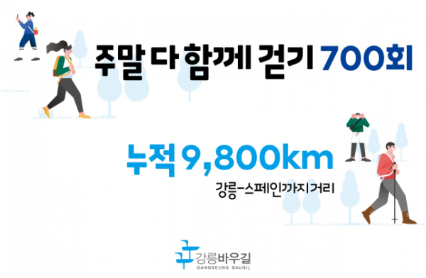 강릉의 도심과 바다, 산을 아우르는 주말 다함께 걷기 행사는 699회 현재까지 누적 거리가 약 9,800km에 이르렀으며 이는 강릉에서 스페인까지 걸어가는 거리와 맞먹는다.