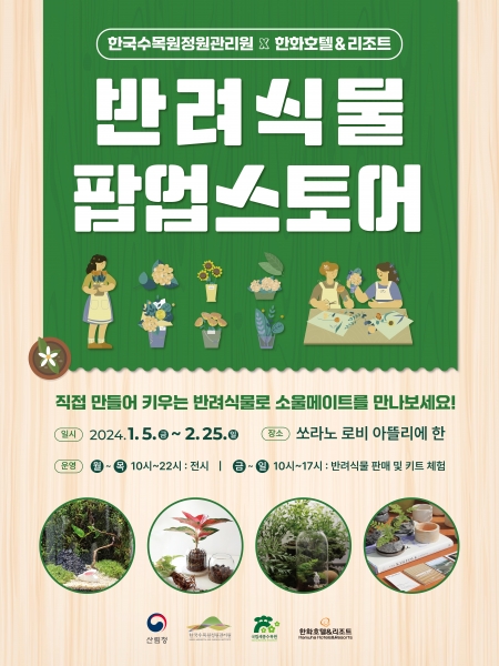 [AANEWS] 한국수목원정원관리원은 오는 2월 25일까지 한화호텔앤드리조트 설악 쏘라노에서 반려식물 팝업스토어를 운영한다.