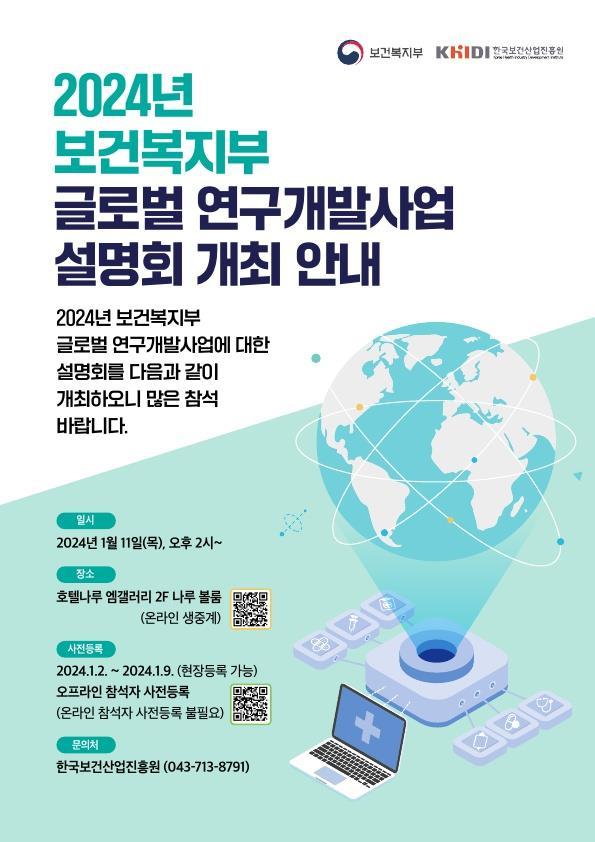 [AANEWS] 보건복지부와 한국보건산업진흥원은 1월 11일 오후 2시에‘2024년 보건복지부 국제공동연구 사업설명회’를 개최했다.