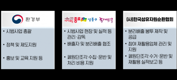 이번 협약에 참여한 서울시 3개 자치구는 전용 수거봉투에 폐원단 조각이 재질별로 분리배출 되도록 현장에서 지원하고 적정하게 수집·운반 및 재활용될 수 있도록 처리 비용 등을 보조할 예정이다.