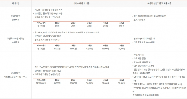 특히 강원건강한출산지원, 장애인보조기기렌탈서비스는 예산 소진 시까지 수시 모집한다.