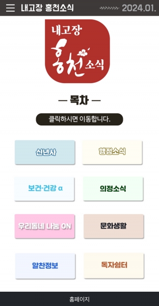 ‘내고장 홍천소식’ 모바일 소식지는 모바일 기기에 최적화된 화면을 적용해 기존 지면 소식지 가독성의 불편함을 개선하고 구독자가 희망하는 화면으로 간편하게 이동할 수 있다.